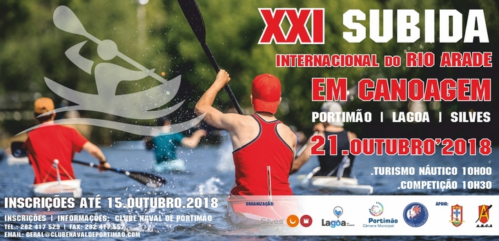 A XXI Subida Internacional do Rio Arade terá lugar no próximo dia 21 de outubro. A iniciativa é promovida pelo Clube Naval de Portimão em parceria com os Municípios de Silves, Lagoa e Portimão e conta com o apoio da Federação Portuguesa de Canoagem e da Associação Regional de Canoagem do Algarve.